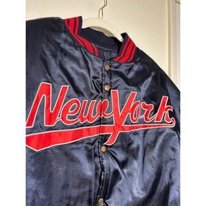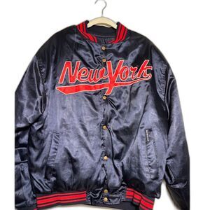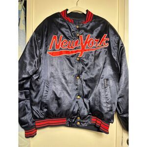 New York Satin Bomber Jacket Varsity Collegiate Renegade VTG Size 2XL Blue Red