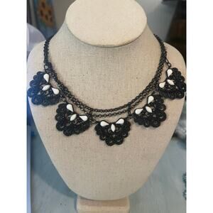 New York Signed Necklace Black With white tear drop Stones Double Chain Feminine