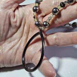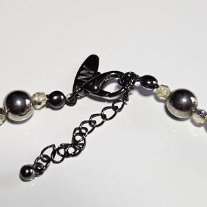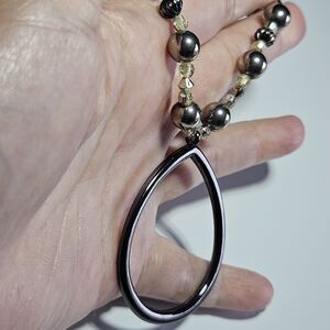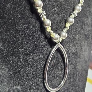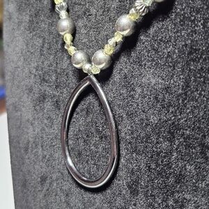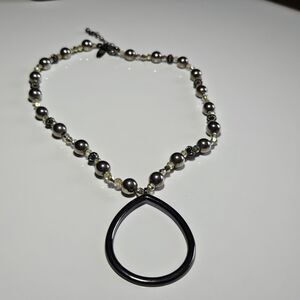New York Silver Tone Beaded Necklace Teardrop Shaped Pendant 17-19"