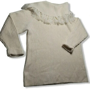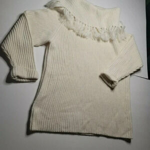 New York Style Fringe Ivory Off Shoulder Sweater Cowlneck Size S women's