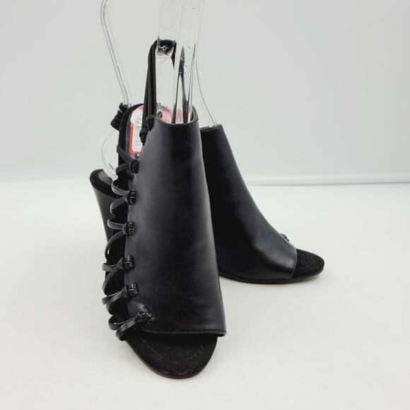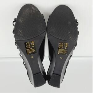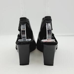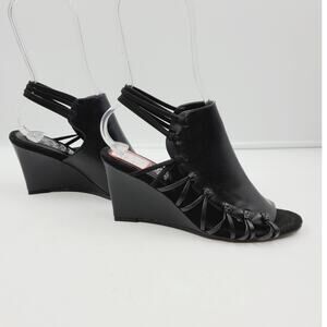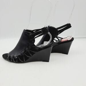 New York Transit Black Vegan Leather Wedge Heel Sligh Back Sandal, Women's Size 7 M