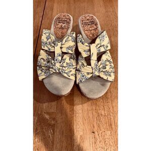 New York Transit Black yellow floral Cork Wedges Shoes Sandals SZ 8.5 Very good condition