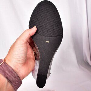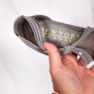 New York Transit Women's Silver Wedge Sandals Strappy Open Toe Size 6 M