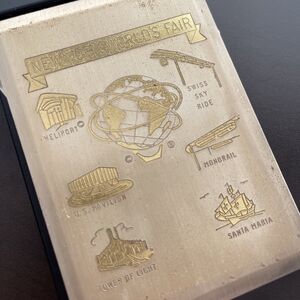 New York Worlds Fair Metal Note Pad Holder Graphics Heliport Sky Ride Monorail