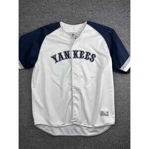 New York Yankees Jersey Mens 3XL White Navy MLB Baseball Derek Jeter 2 Button