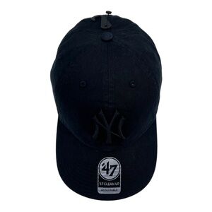 The New York Yankees MLB '47 Brand Clean up Adjustable Strap Hat/Cap in Black on Black is an officially licensed baseball cap featuring the iconic New York Yankees team logo. Made by the reputable brand '47, this unisex adult hat is perfect for fans looking to show their support during the regular season games. The adjustable strap ensures a comfortable fit for all wearers. Whether you're heading to the stadium or just want to represent your favorite MLB team, this stylish and quality cap is a must-have accessory for any fan.