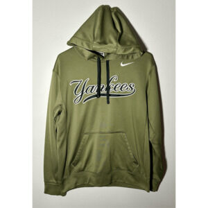 Crafted with premium materials, this hoodie is perfect for chilly game nights and is sized to fit men of all shapes and sizes. With a sleek camo green color and a comfortable fit, this Nike hoodie is the perfect addition to any baseball fan's collection. Show your support for the New York Yankees and stay warm in style with this high-quality hoodie today!
