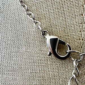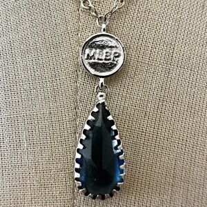 Officially licensed MLBP New York Yankees necklace featuring a silver-tone chain with bezel-set blue and clear crystals. At the center is a Yankees logo medallion with a large faceted teardrop blue crystal drop. Lobster clasp closure. A rare piece that blends sporty pride with elegant sparkle.