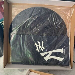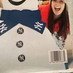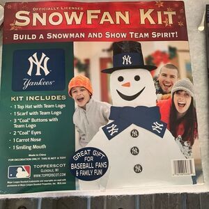 New York Yankees Snowman Snow Fan Kit. New, open box. Includes: Top hat with team logo, scarf with team logo, coal buttons with team logo, coal eyes, carrot nose, smiling mouth.