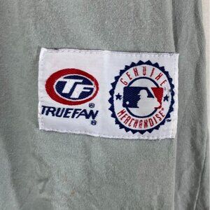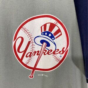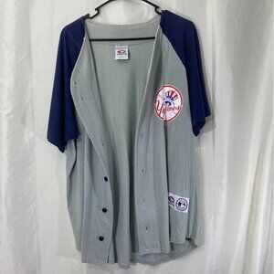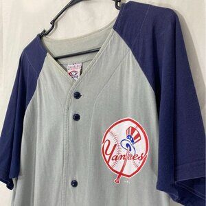 New York Yankees True Fan Baseball Jersey Large Gray & Navy Button-Up Cotton Ble