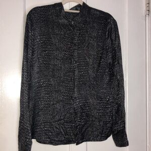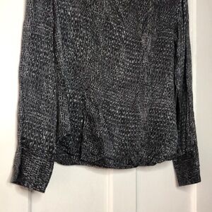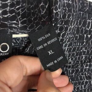 New York and Co Grey Black Snake Print 100% Silk Long Sleeve Blouse Top XL