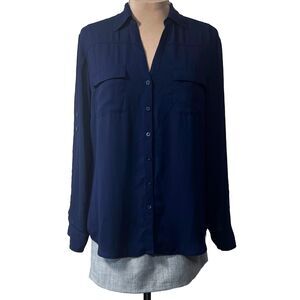 New York and Co. Navy Roll Tab Sleeve Blouse Size XL