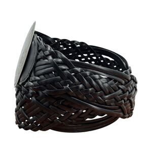 New York and Co Wide Braided Belt Womens L Black Oversized Silver Buckle Leather