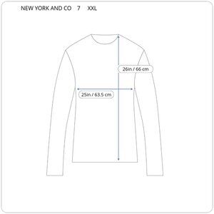 This New York & Co Women's Top in XXL Plus size is a stylish and versatile piece for any wardrobe. The purple/blue watercolor faux wrap design adds a touch of sophistication, while the lightweight polyester material makes it perfect for all seasons. With long sleeves and a pullover closure, this blouse is ideal for travel, casual outings, or business meetings. Easy to care for with machine washable instructions, this top is a comfortable regular fit with a classic/fitted sleeve style. Perfect for layering or wearing on its own, this top is a fashionable choice for any occasion.