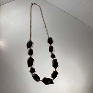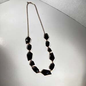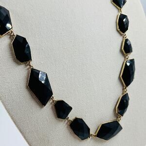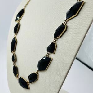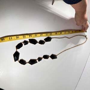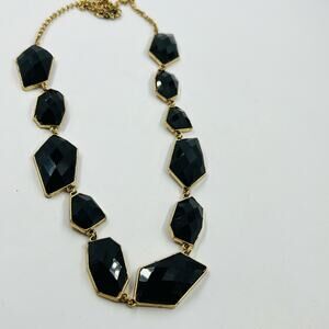 New York and Company Black and Gold Tone Necklace 32” Statement Dramatic