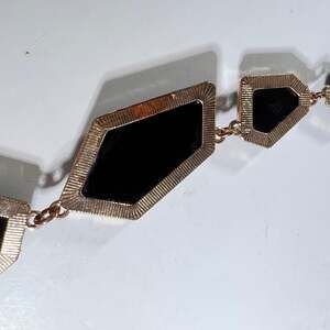 Black acrylic cabochons in gold tone setting