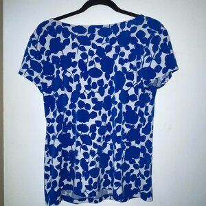 New York and Company Blue White Floral Patterned Short Sleeved Blouse Size L