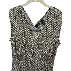 New York and Company Blue & Yellow Faux Wrap Sleeveless Stretch Knit Size Large