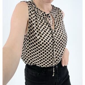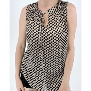 New York and Company Cream and Black Printed Sleeveless Top Size Medium