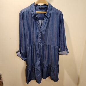 New York and Company Denim Chambray Button Front Roll up Sleeves Shirt D…