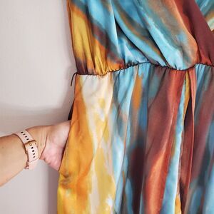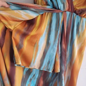 New York and Company Drama Romper Abstract Print Satin V Neck Fairy