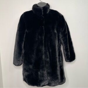 Add a touch of glamour to your wardrobe with this luxurious New York & Company faux fur coat. Designed to keep you warm while making a bold fashion statement, this coat features a soft, plush faux fur finish in a classic black shade. The tailored silhouette is complemented by a high neckline and elegant button closures, adding both functionality and sophistication. Perfect for pairing with evening wear or elevating a casual outfit, this coat is a must-have for anyone seeking timeless style and comfort. Stay cozy and chic with this versatile statement piece!