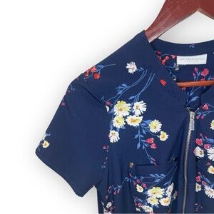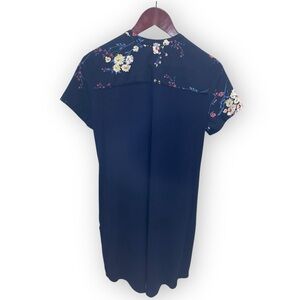 Elegant dress with a floral pattern. Features a soft blend of materials.