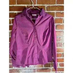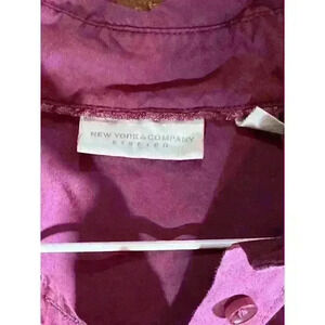 Whether you're heading to a meeting, a casual outing, or a special event, the New York and Company Mauve Button-Down Shirt in Women's Size Medium is a stylish and practical choice that enhances your wardrobe with a touch of elegance and contemporary flair.