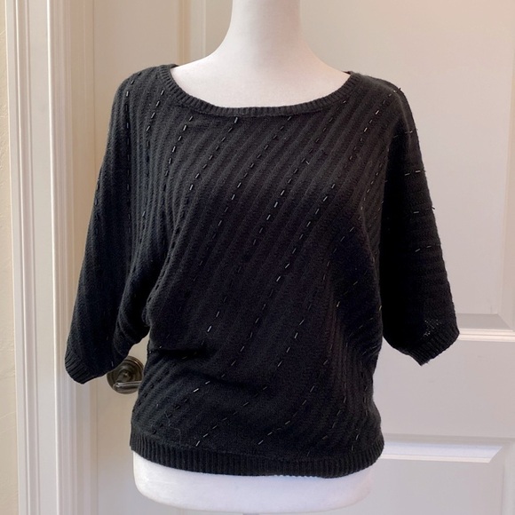 New York and Company Sweater Womens Black Sequins Dolman Sleeve Festive Sz XS