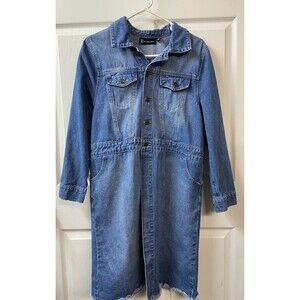 New York and Company Womens Small Denim Raw Hem Jean Coat 3/4 Sleeve Duster