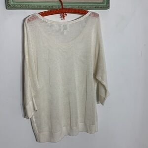 New York and Company white boho round neck open knit three-quarter sleeve. XL