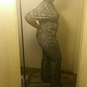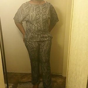 Size large black and white paisley print jumper. Keyhole detail in back, waist detail and pockets. Brand new with tags.
