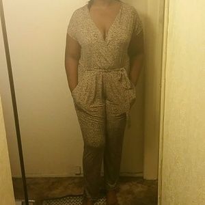 Animal print tan and black jumper. Size xl with deep v front, attached belt and pockets. Stretchy material.