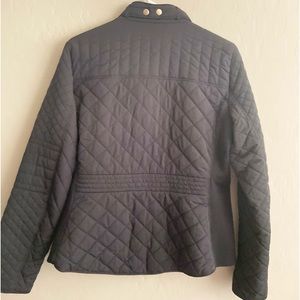 Very gently used maybe 1-2 times items are from a family member who ships a lot but doesn’t wear anything she buys only quality items it’s polyester nylon blend and has a slight puffer jacket windbreaker feel but there zipper w buttons and gold trim so beautiful perfect for a light jacket a medium size true . Black w gold trim very gently used Please visit me to see other jackets in small medium range I do have a few I am trying to get rid of.