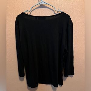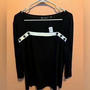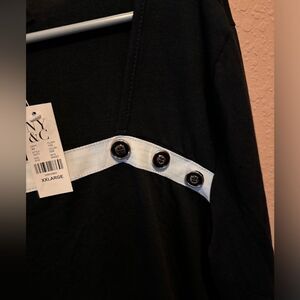 Beautiful black colored top with buttons on front and white stripe