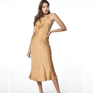 New Young Fabulous & Broke Rebel Halter Slip Midi Dress In Rabbit Gold NWT Large