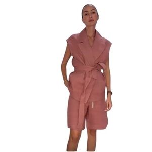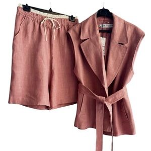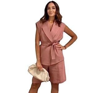 New ZARA Belted Linen Waistcoat Vest Blush Pink
