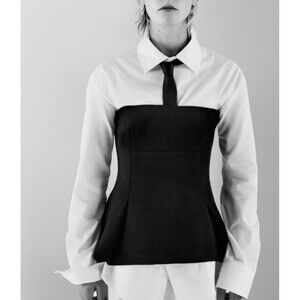The ZARA Black Strapless Peplum Top in XS is a stylish and versatile piece for women. Made from a wool blend fabric, this top features a square neckline, sleeveless design, and a zipper closure. Perfect for formal occasions or parties, this top offers a flattering fit with a regular size type. The hand wash only garment care guidelines ensure the longevity of this chic and sophisticated addition to your wardrobe.