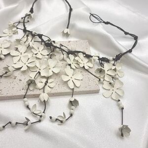 ZARA Cascading flower ecru ( creamy off white ) cord necklace