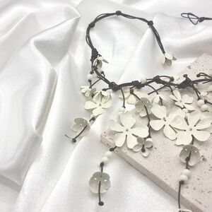 New ZARA Casscading Flowers Ecru Cord Necklace