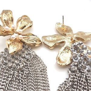 tropical earrings,  flower earrings,  summer spring vacation statement viral trending fashion designer two tone gold silver