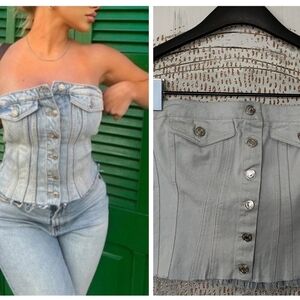 Super cute denim tube top, smocked at the back so there is a stretch.