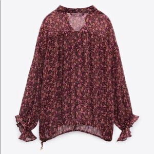 New ZARA FLORAL PRINT SHIRT Blouse semi sheer Multicolored Size Small
