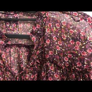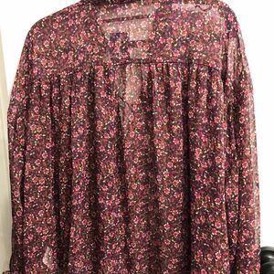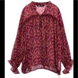 New ZARA FLORAL PRINT SHIRT Blouse semi sheer Multicolored Size Small