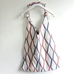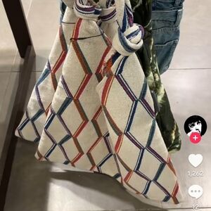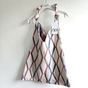 New With Tag ZARA Geometric Pattern Ecru Medium Beach Hobo Tote Bag