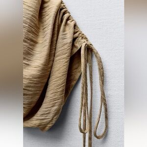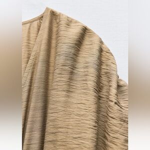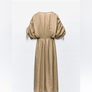 Surplice v-neck dress with gathered ample short sleeves adjustable with ties