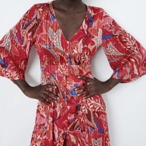 New ZARA SS21 Metallic Thread Printed Dress Multicolored NWT Size Large