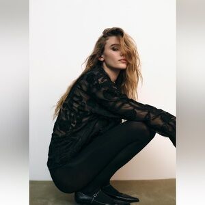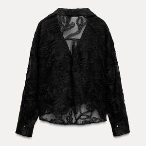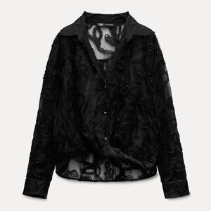 New ZARA Structured Semi-Sheer Floral Shirt