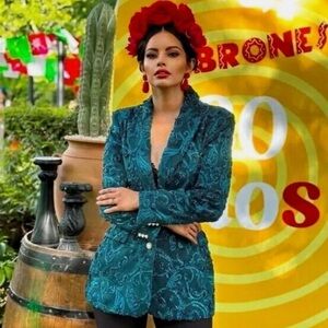 New ZARA Textured Tailored Blazer With Jewel Buttons