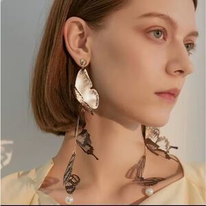 New ZARA Triple butterfly pearl drop earrings